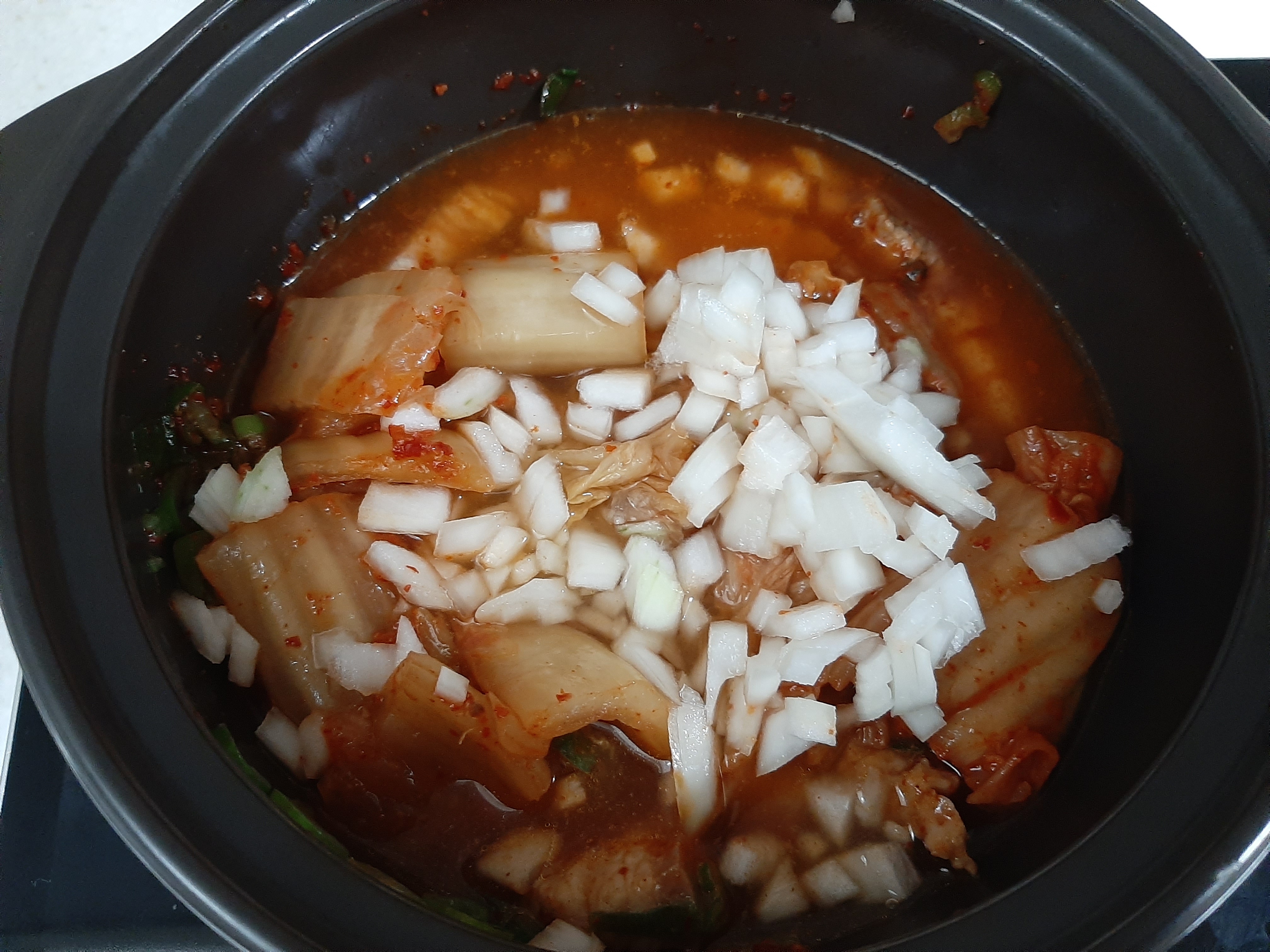 7. 썰어둔 양파 1/4개를 넣어줍니다.