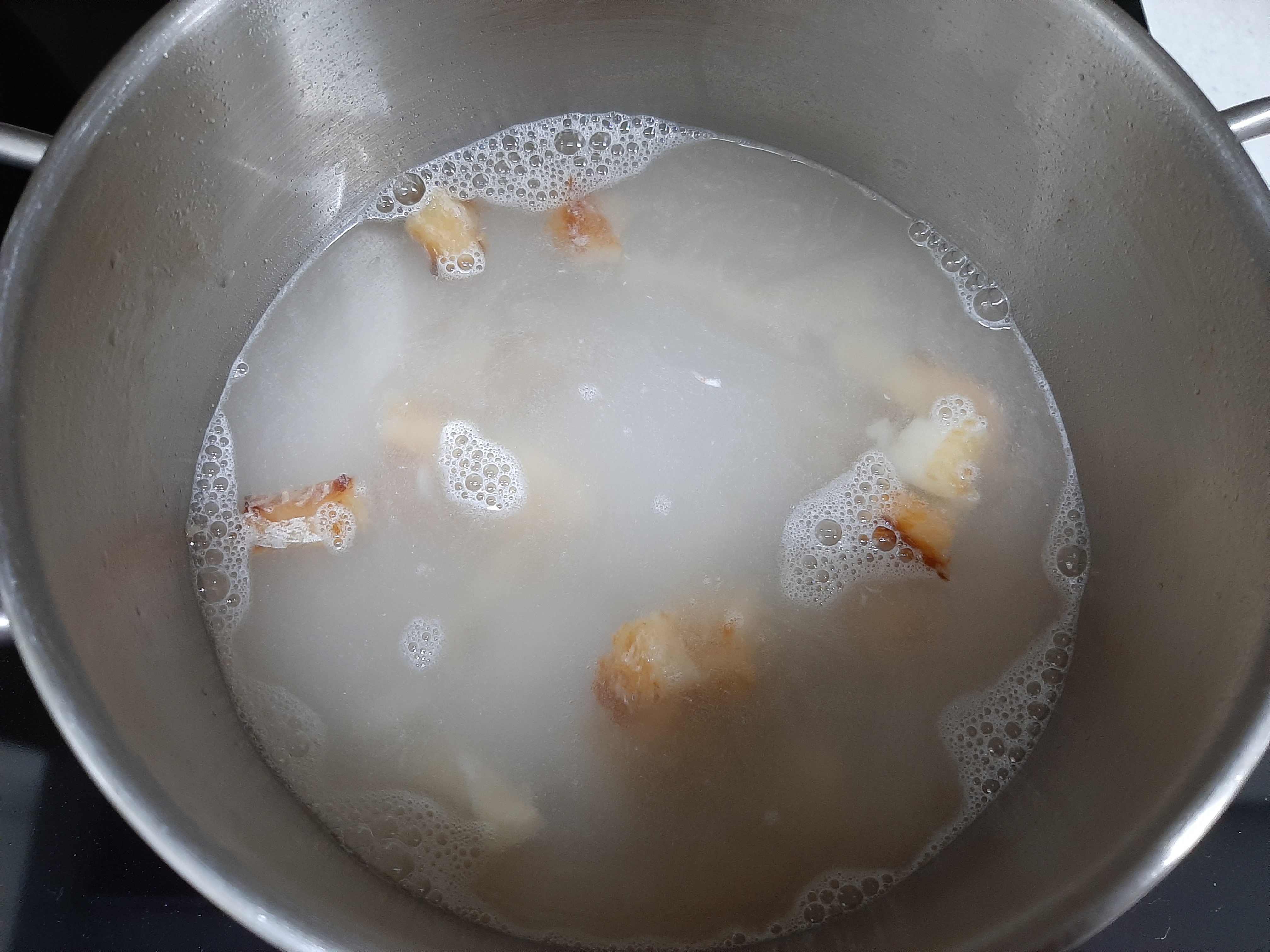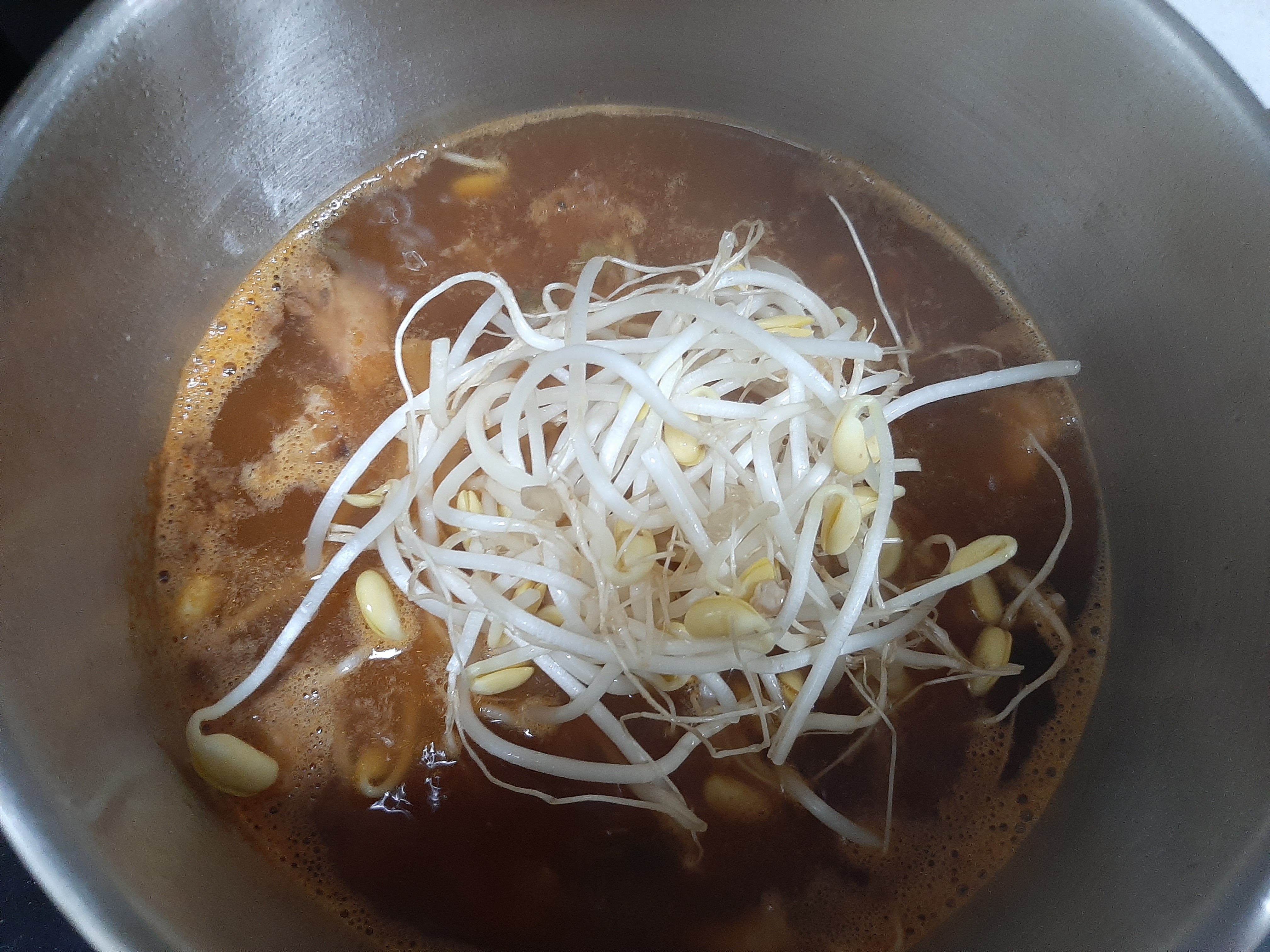 7. 물이 끓으면 씻어놓은 콩나물 한주먹 넣어주고,