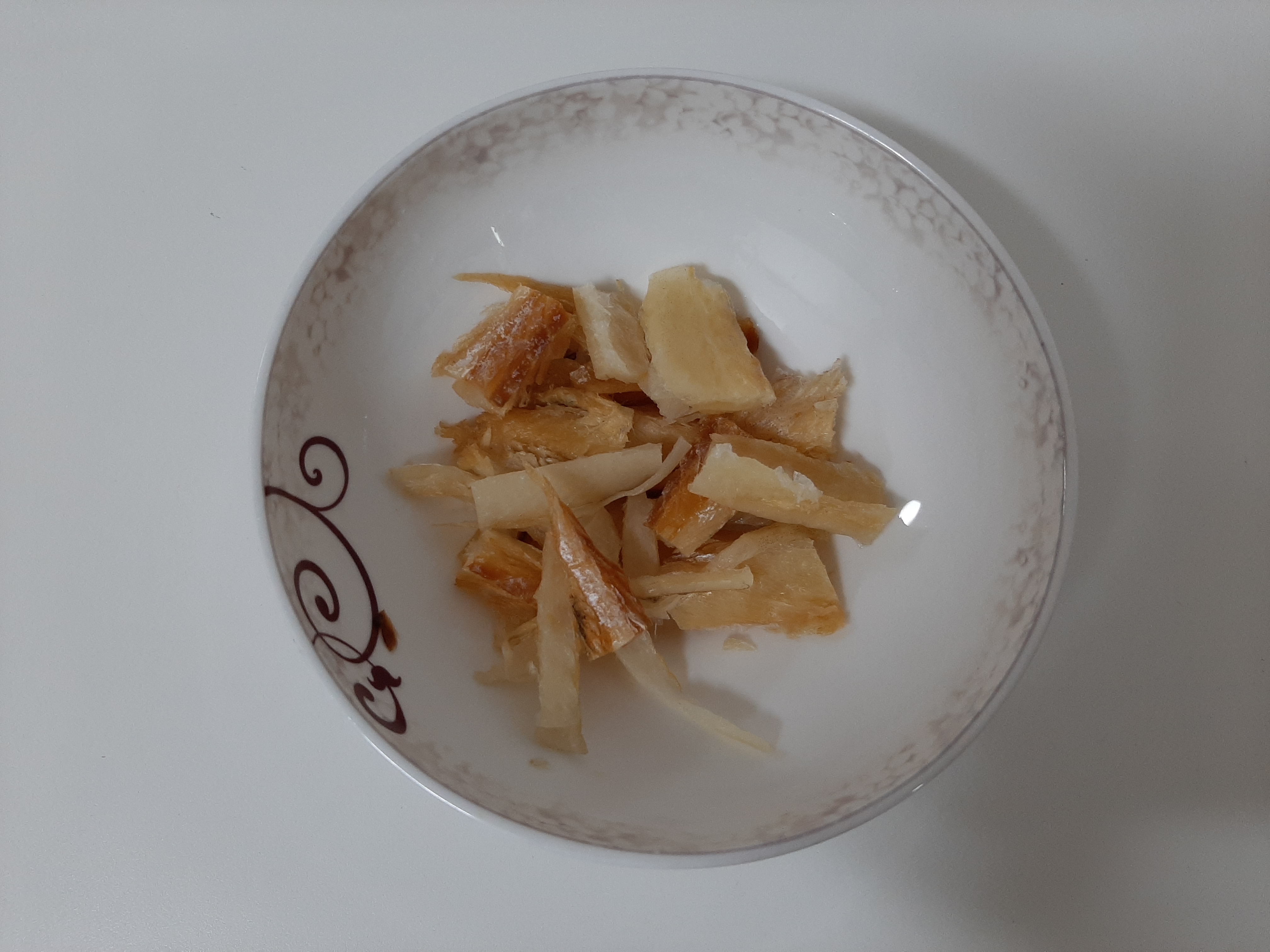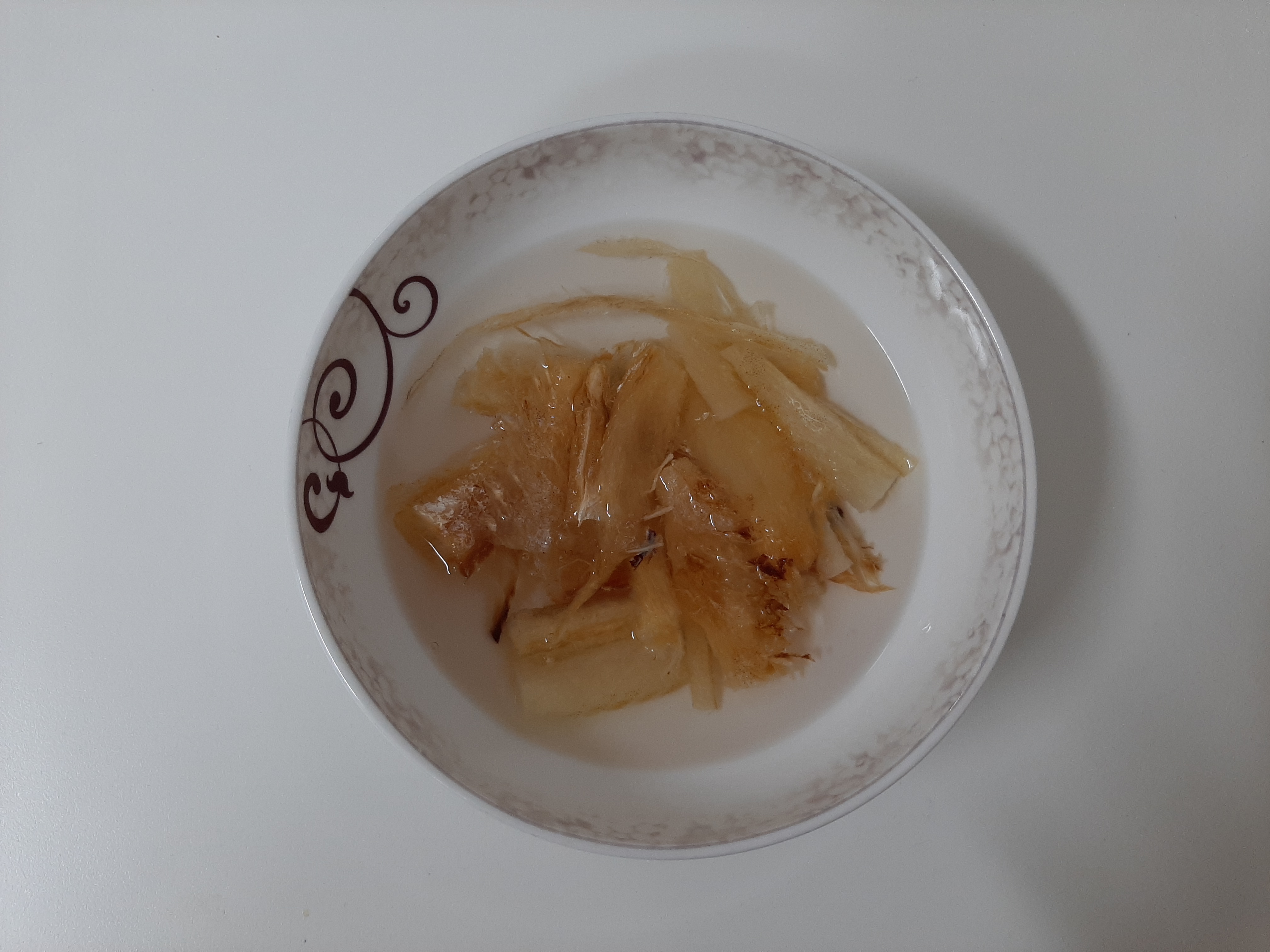 1. 황태채에 물을 부어 촉촉하게 해줍니다. 살짝만 담가둬도 금방 촉촉해져요.