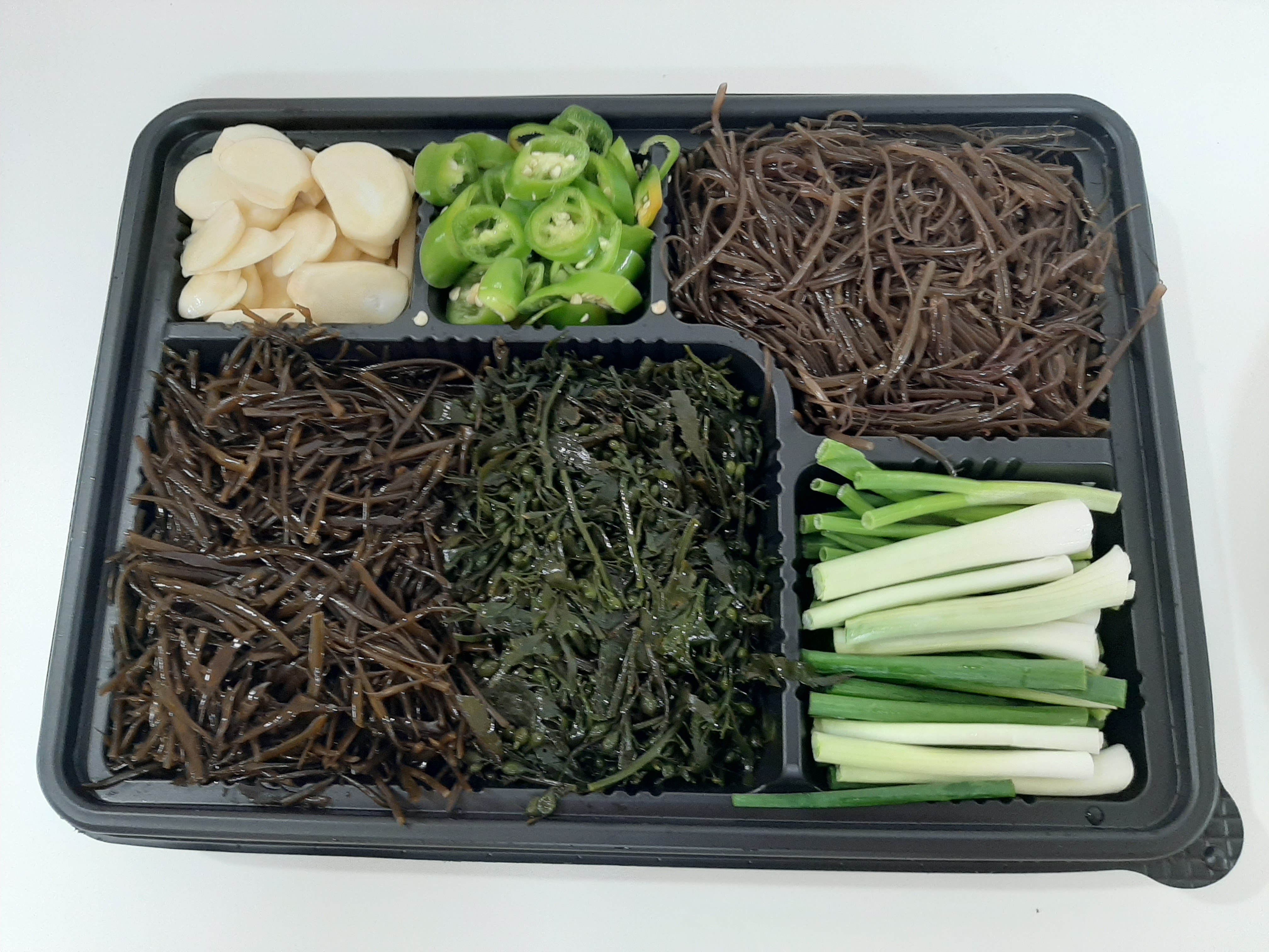 해조류와 야채들은 이렇게 들어서 왔는데요, 톳, 모자반, 꼬시래기가 어떤게 어떤건지는 구분은 못하겠더라구요. (잘 먹어보지도 않았고 찾아보지도 않았거든요.)