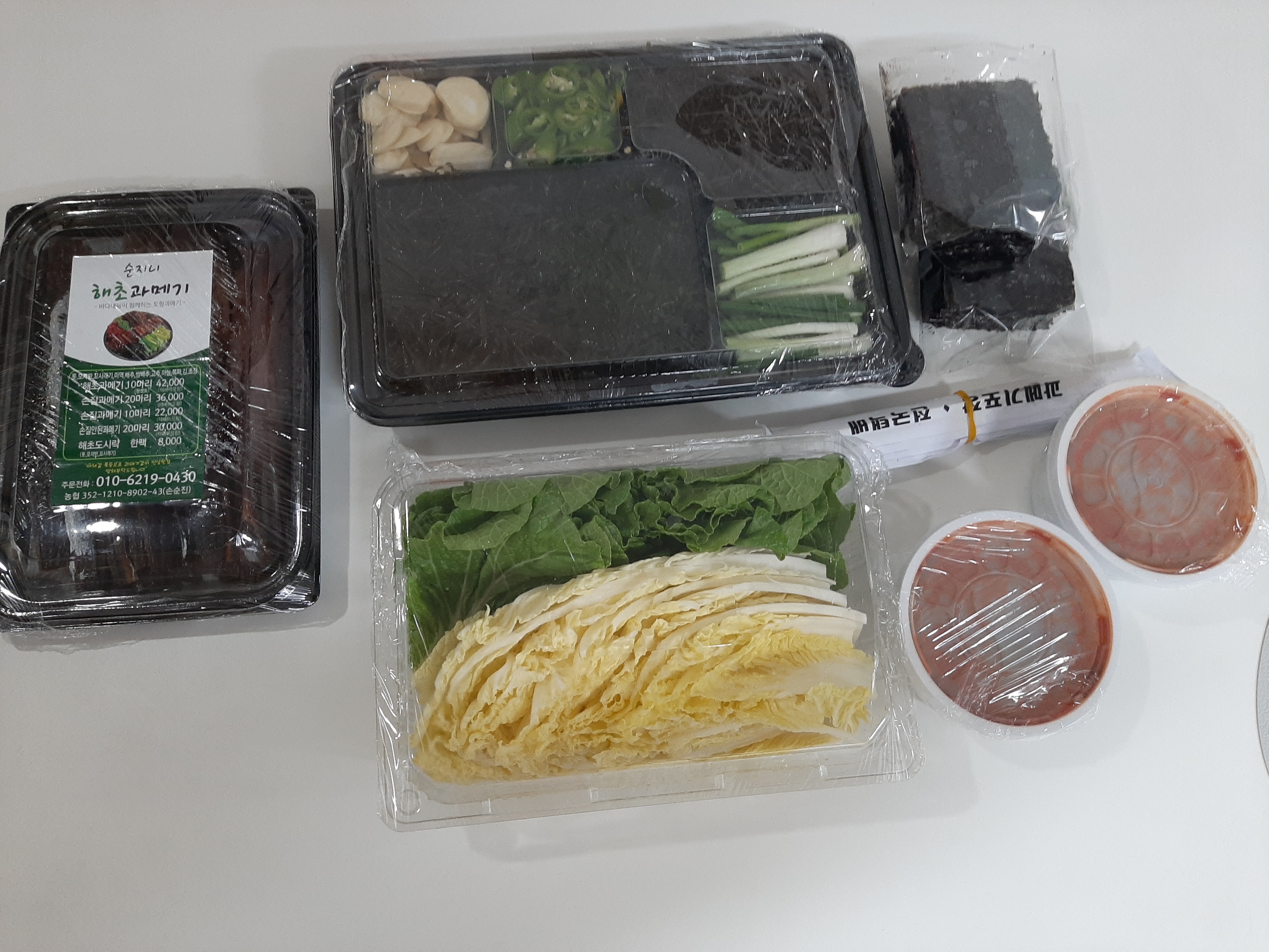 처음 주문하는거라 어떤걸 제일 많이 시키냐고 여쭤봤더니 야채까지 다 들어있는 세트로 많이 주문한다길래 저도 그걸로 보내주시라 했어요. 가격은 42,000원이었어요.